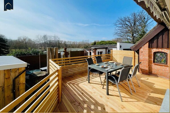 Hochwertige, geschmackvolle Einrichtung, vollausgestattete Küchen, Waschraum mit Waschmaschine, WLAN sowie Terrasse mit Grillplatz und Sitzmöglichkeiten gehören zu der Ausstattung der drei Ferienobjekte. Terrasse, Grillmöglichkeit und Fahrradschuppen befinden sich im Gartenbereich. Ein PKW-Stellplatz gibt es direkt am Haus.