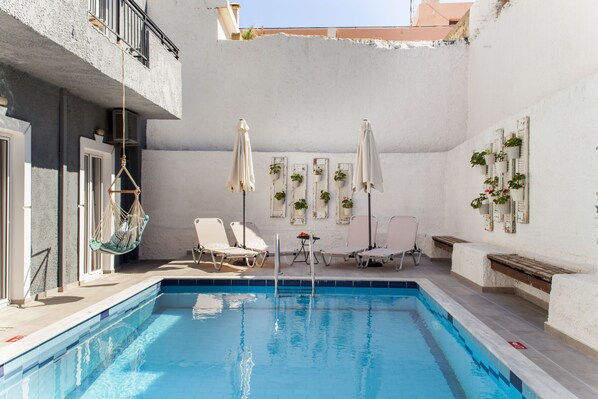 Pension nur für Erwachsene, in unmittelbarer Nähe zum Kongresszentrum in Chersonissos und mit Außenpool (je nach Saison geöffnet)