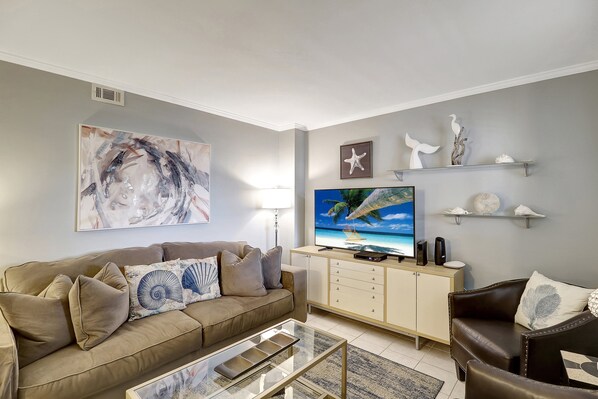 Große Einheit mit 2 Schlafzimmern und 2 Bädern im 3. Stock des Gebäudes 4 im Hilton Head Resort. Diese Villa mit nautischem Thema ist perfekt für Ihren nächsten Urlaub. Das Wohnzimmer bietet einen Flachbildfernseher viel Wohnraum für die Gruppe. Für den Esstisch stehen zusätzliche Stühle mit Platz für 6 Personen zur Verfügung. Die Küche ist voll ausgestattet mit allen wichtigen Kochutensilien.