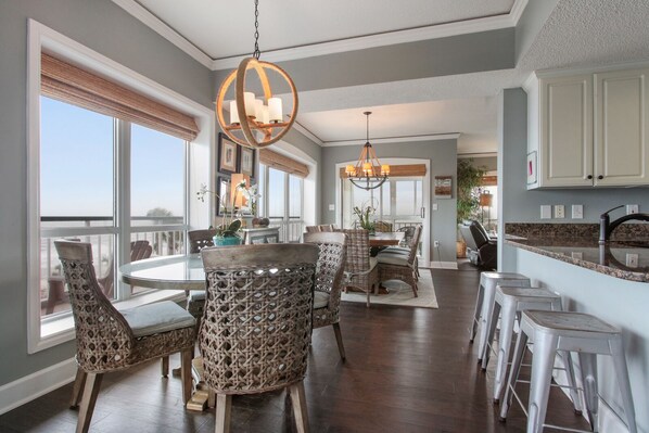 Extras wie eine Veranda mit einem Tisch und vier Stühlen, High-Speed ​​Wireless Internet, Kabel-TV und einem umlaufenden Balkon mit vielen Sitzgelegenheiten und großen Palmetto Dunes Meerblick.
