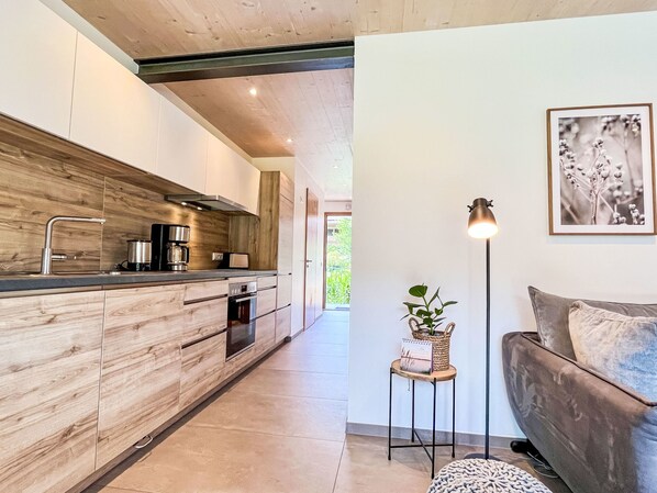 "Kinast (HFT201)", 2-Zimmer-Wohnung 45 m2 im 1. Stock. Modern und geschmackvoll eingerichtet: Wohn-/Esszimmer mit Sat-TV. Ausgang zum Balkon. 1 Zimmer mit 1 Doppelbett und Bad/Dusche/WC. Offene Küche (Backofen, Geschirrspüler, 4 Glaskeramikplatten, elektrische Kaffeemaschine). Sep. WC. Fussbodenheizung. Holzdielenboden. Balkon. Balkonmöbel. Zur Verfügung: Haartrockner. Internet (Wireless LAN, gratis). Parkplatz (2 Autos). Bitte beachten: Nichtraucher-Unterkunft. Rauchmelder.