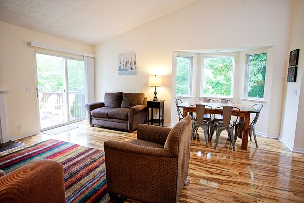 Das Peterson Creek Retreat ist eine geräumige, 2-stöckige Wohnung mit 1.600 Quadratmetern, Klimaanlage, Geschirrspüler, Waschmaschine / Trockner, Gasgrill im Freien, Sitzgelegenheiten im Freien, Brettspielen, Geschirrfernsehen, DVD-Playern, kostenlosem WLAN, Garagenparkplätzen und Handtüchern / Bettwäsche. Diese Endeinheit Wohnung ist wie ein Stadthaus und bietet viel Privatsphäre, da es nur einen Nachbarn gibt.