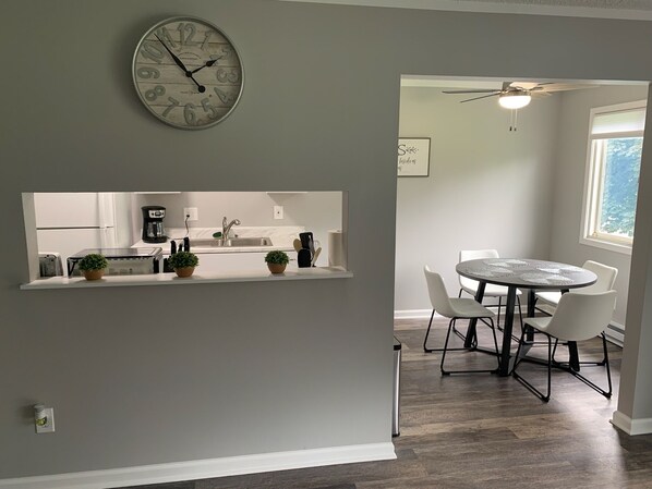 Whether you want to get cozy by the electric fireplace after a day at the slopes or need to cool off in the air conditioning after a day in the sun at the ORV Park, we have you covered! Stylish and comfortable furniture will make you feel right at home throughout your stay.
