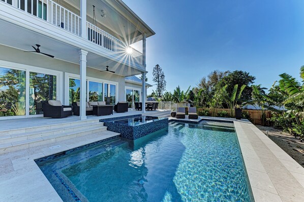 Whether you're soaking up the sun, enjoying dinner outdoors, or cooling off after a beach day, this space is designed for making unforgettable memories.