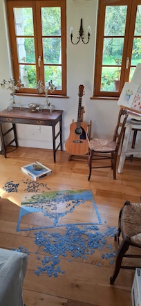 We spent a week there with our family (4 adults and 3 teenager) and had a wonderful time. The house is really cosy and unique with a lot of charm. the large garden is just fantastic - for both, kids and dogs and for relaxing. The house has absolutely everything you need. we surely enjoyed cooking in the beautiful kitchen and sitting around the large wooden table, playing games. throughout the garden and inside the house are cozy corners for sitting, relaxing, reading oder painting. We often took the footpath to honfleur-nice and easy to walk.It is a very lovely, special place and Clare and Tom a extremely pleasent hosts.