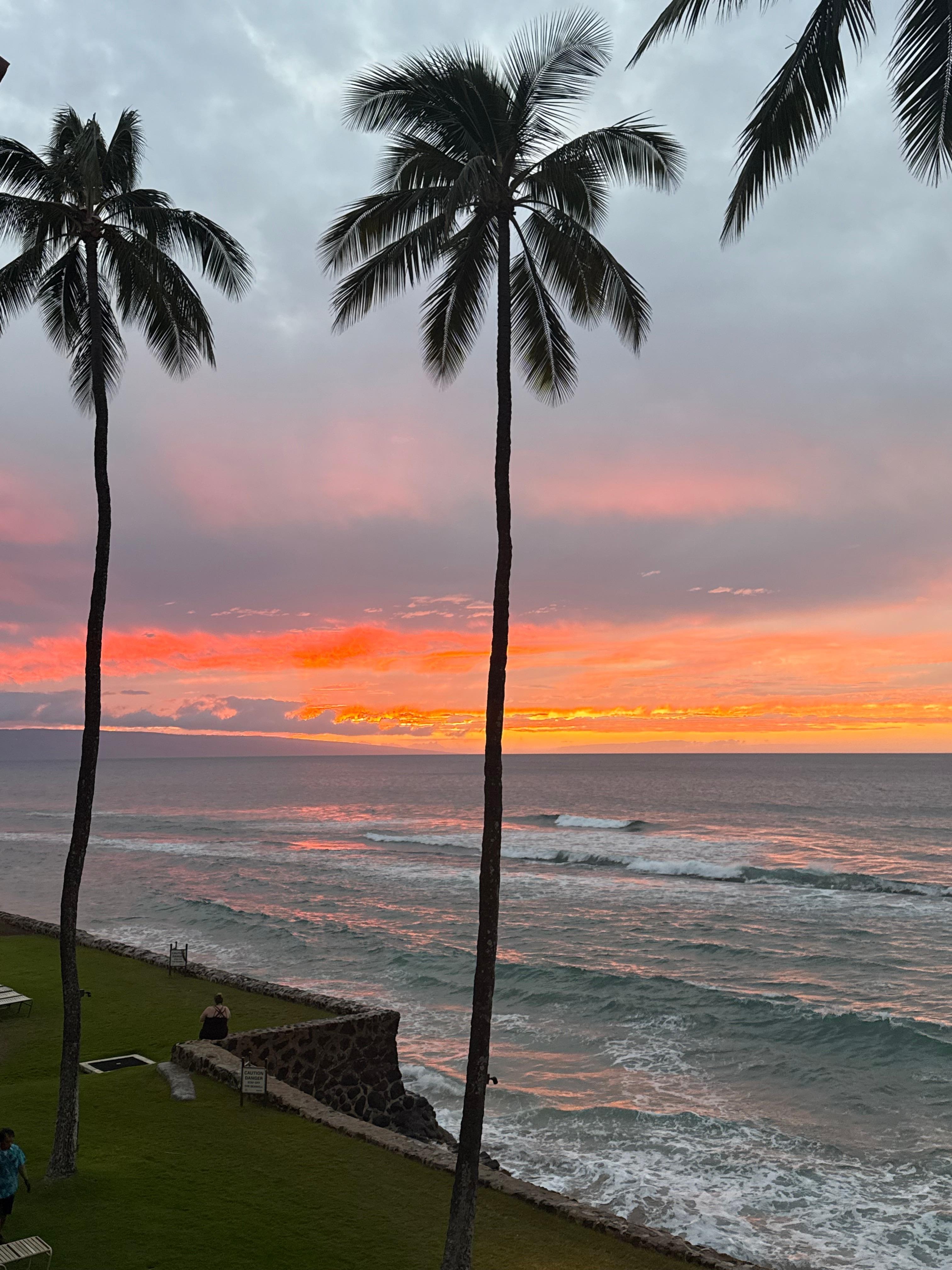 An absolutely beautiful view from this property!! The daily sunsets are gorgeous-and the ocean is so close-sitting on the lanai was the highlight of our stay! Perfect rental for two people…would definitely stay here again!