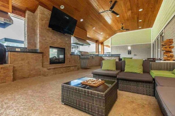 🔵 Outdoor kitchen lounge area
