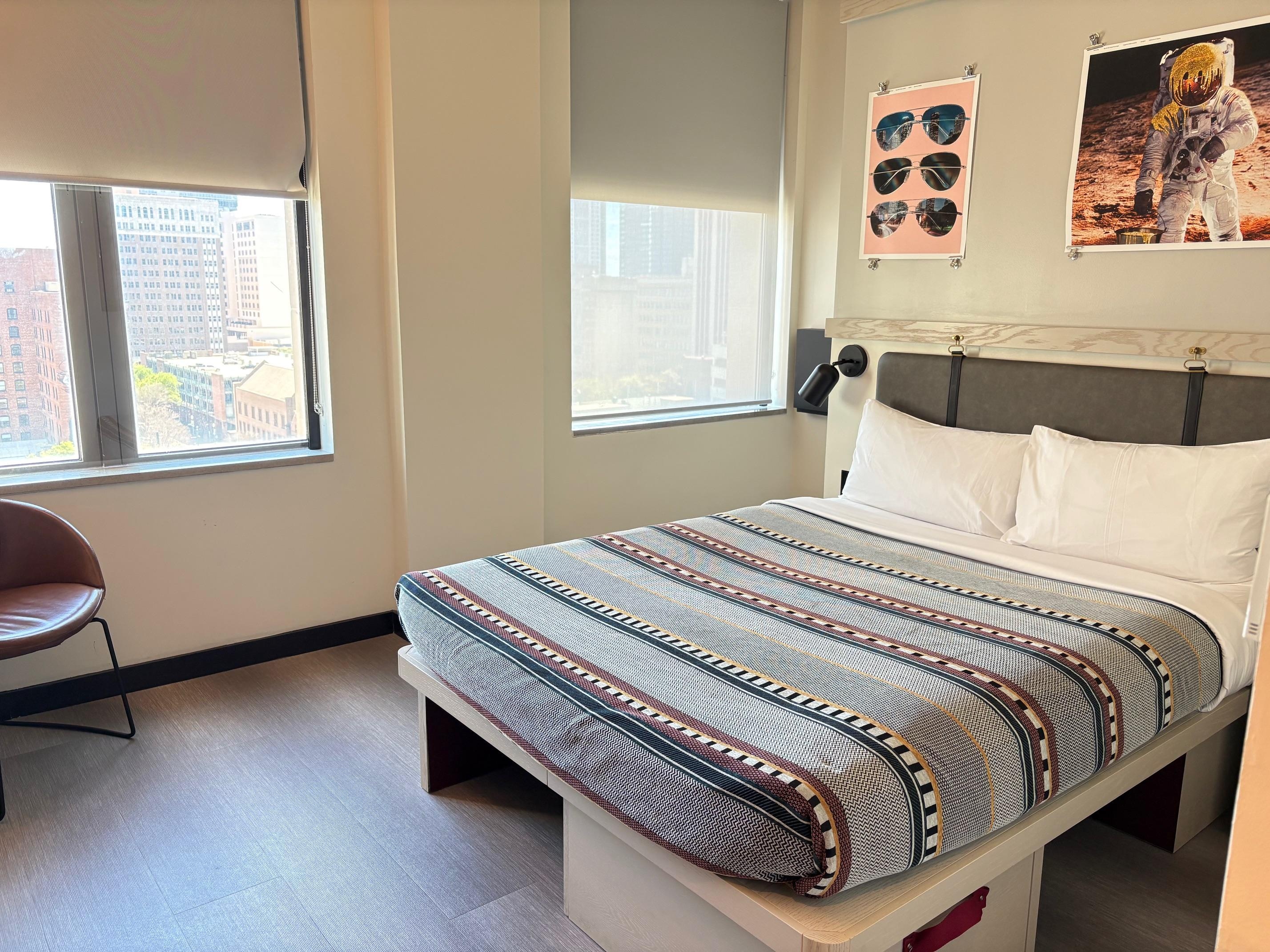 This is definitely an urban hotel! I had no issues with it, but I grew up in New York City and am used to noise, watching out for things, and general street smarts. My room was on the 10th floor so I didn't hear much street noise when trying to sleep, but coming back to the hotel at night there were all sorts of clubbing people out (even on a Thursday) and music blaring in the streets. My room was really nice and clean and I had no problems with any of it. However, at night there was no one checking the people coming and going in the hotel lobby (and some people came in just to drink at the bar) so having anyone being able to go up in the elevators might concern some people. The hotel is for a younger, hip crowd and I would not recommend it for seniors, families, or conservative suburban people.