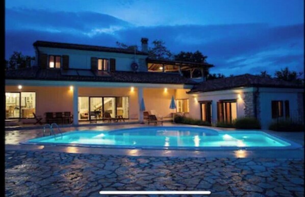 ARTON villa (398m2) located in the heart of Istria and is an ideal starting point for numerous excursions. The entire plot (2350m2) is fenced. The interior of the house is modern and furnished with quality furniture and nice details to make guests feel at home. Fireplace and a pool table in the spacious living room provide a comfortable atmosphere during their stay, and guests have access to the wireless Internet access and satellite TV, Billiards, Play Station 3, table football.