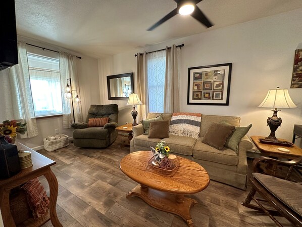 • Living Room: Ample seating with sofa, recliner & 2 rockers; smart TV