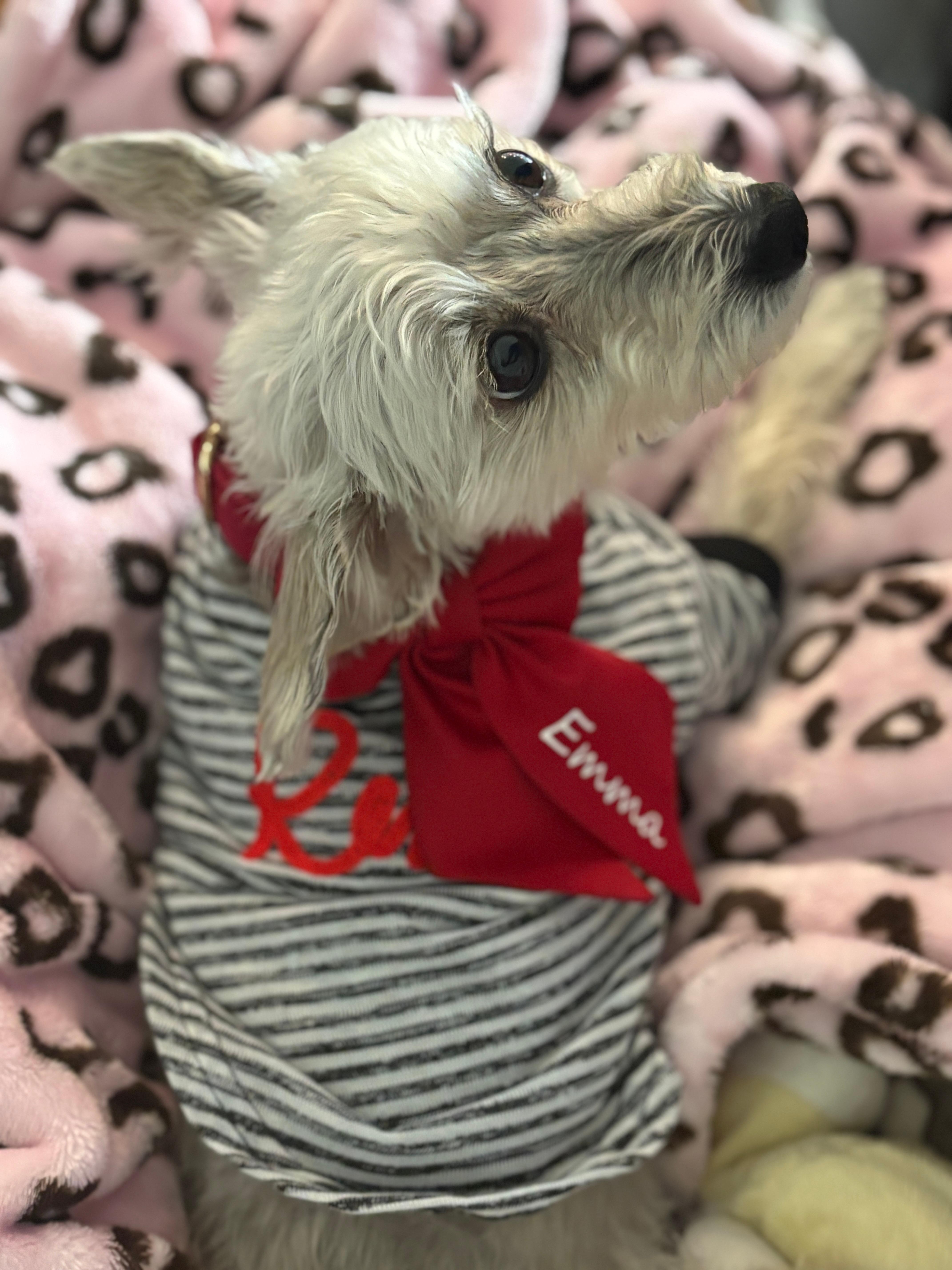 we took our little schnauzer doodle, with us