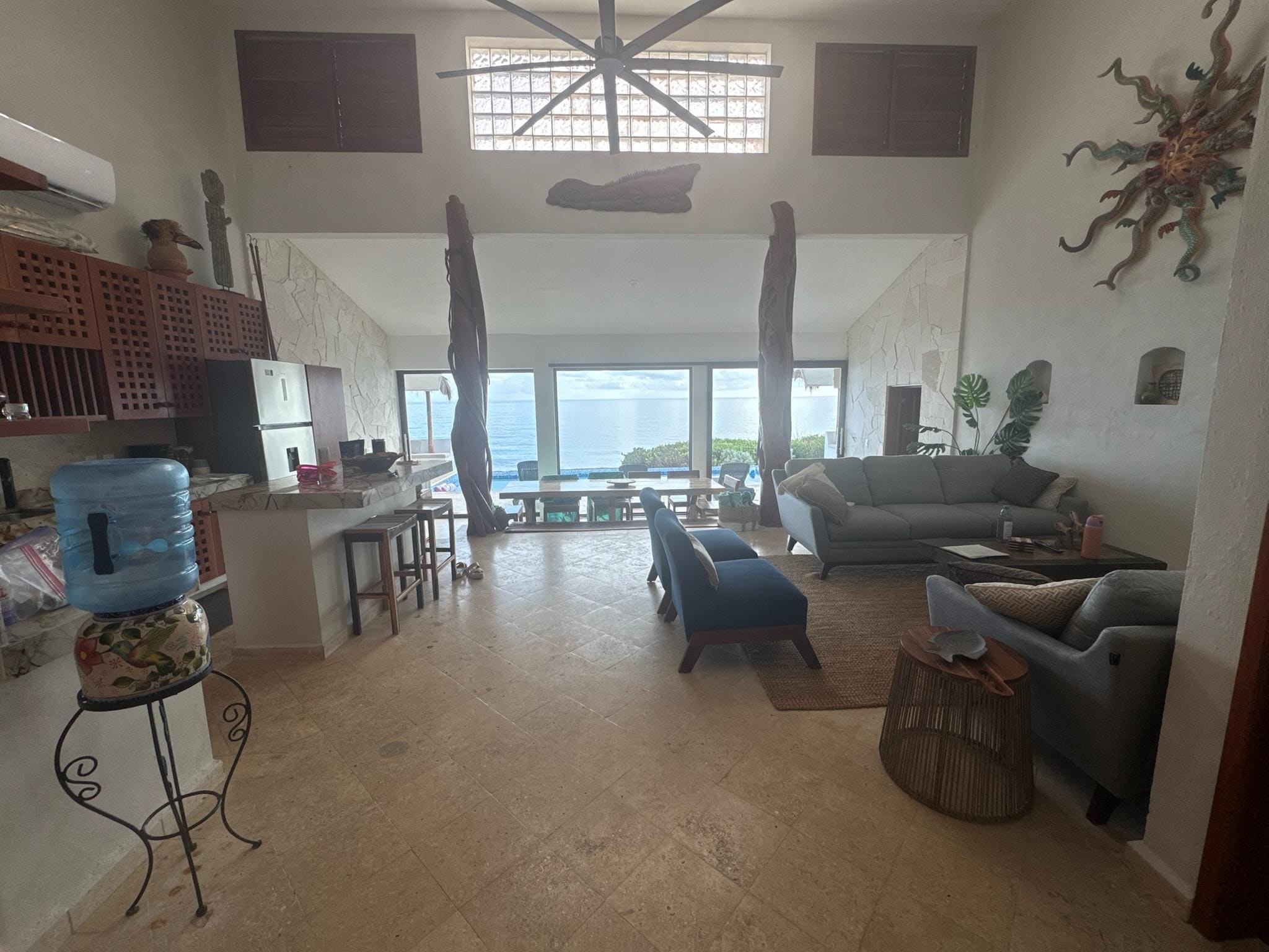 Cons - ants (but can't be helped when you are surrounded by nature and they didn't really bother us), the sliding doors were very heavy and hard to open and had no screens, the rocking chairs in the back kept getting black on our arms (I think they were spray painted and in the heat it came off), no flushing toilet paper so have to throw in garbage can (not owners fault this is the whole island)