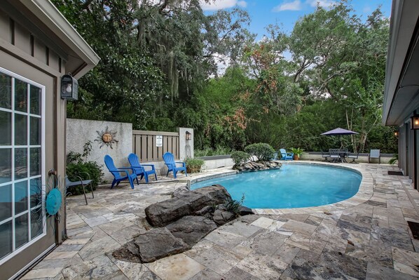 Our family of 10 loved staying here! It was the best of both worlds with having a private pool and being able to walk to the beach by beautiful trails. The pool was cleaned 2x a week and we were pleasantly surprised not to experience any mosquitos the whole week! We did all enjoy the evening visiting frogs and the armadillo family in the lush vegetation-very cool wildlife! The house is spacious for gathering together in the living area, as well as sleeping arrangements for everyone. There is a bathroom for each bedroom. The upstairs bathrooms are not updated as downstairs but are large, clean and functional. All of the beds were comfortable! The house was better equipped than expected. Plenty of cookware in the lovely kitchen & we found pool/beach towels in the closet of the living room next to the tv which could have saved us some suitcase space. The beach cart in the pool house was key and we are so thankful it was there for use, along with pool/beach toys. We would recommend bringing some extra hand towels for the kitchen. In addition to the beach, we walked to play mini golf and to the Aury Island playground. Amelia Island Plantation is so peaceful and we felt safe at all times. My husband enjoyed running all of the nature trails at this end of the Island. We highly recommend the short drive out of the plantation to Lagniappe restaurant (we ate there twice). We would happily stay at this home again-thank you for sharing it with us!
