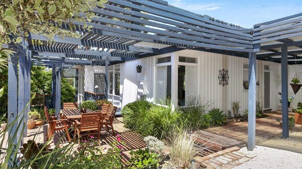 Dieses fantastische Strandhaus, das an der Ecke eines ruhigen Hofes liegt, erfüllt alle Kriterien - vom offenen Wohnen bis zum Entspannen in den bezaubernden Gärten auf der Vorder- und Rückseite des Grundstücks. Hier können Sie Ihren Morgenkaffee in Ruhe genießen.