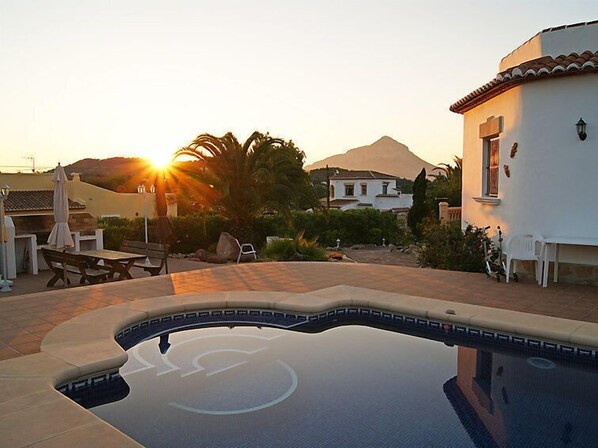 Haus "Reposo". Im Ortsteil Pinosol, 2.5 km vom Meer. Zur Alleinbenutzung: Garten 1'000 m2 (eingezäunt) mit Pflanzen und Bäumen, Schwimmbad (4 x 9 m, saisonale Verfügbarkeit: 01.Jan. - 31.Dez.) mit Innentreppe. Aussendusche. Im Hause: Zentralheizung. Einkaufsgeschäft 2.5 km, Restaurant 600 m, Bushaltestelle "Mas y Mas carretera del Pla" 1.7 km, Sandstrand "Arenal" 2.5 km. Der Besitzer akzeptiert keine Jugendgruppen.