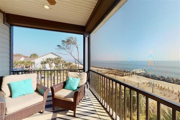 This property is beautiful, spacious, and in the perfect location! We were just steps from the pool and the beach. The views were spectacular. You can hear the ocean from the lovely screened in porch! Would highly recommend this property to anyone seeking a comfortable and relaxing trip to the beach! And the golf cart was super fun!