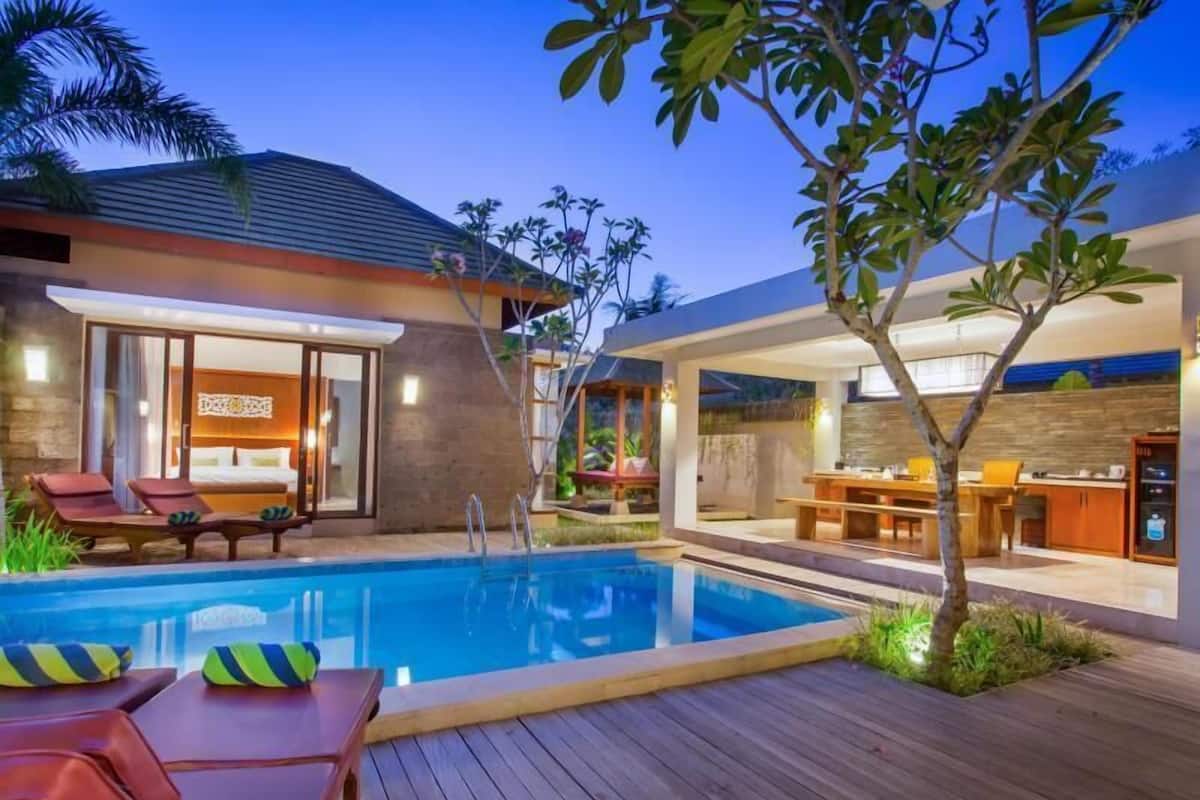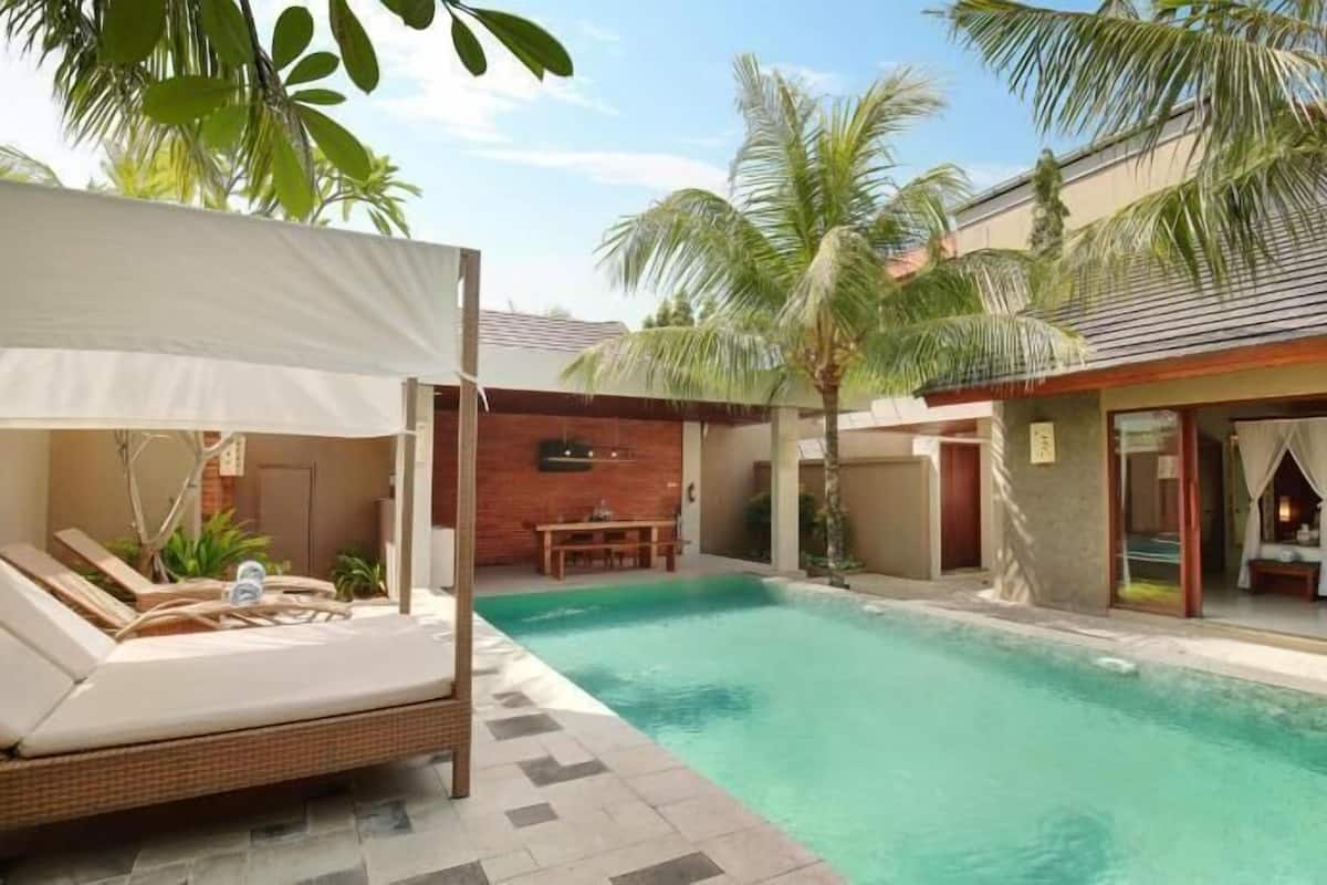 Diese Villa für Familien liegt in Jimbaran in Strandnähe. Samasta Lifestyle Village und Italienisches Honorarkonsulat befinden sich im Umkreis von 3 km. Ebenfalls nur bis zu 5 km entfernt: Garuda Wisnu Kencana Cultural Park und Benoa Square.