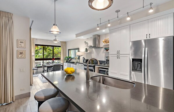 Two remodeled kitchens with stone counters and high-end stainless steel appliances are available for your group to prepare the perfect meal or refreshment.