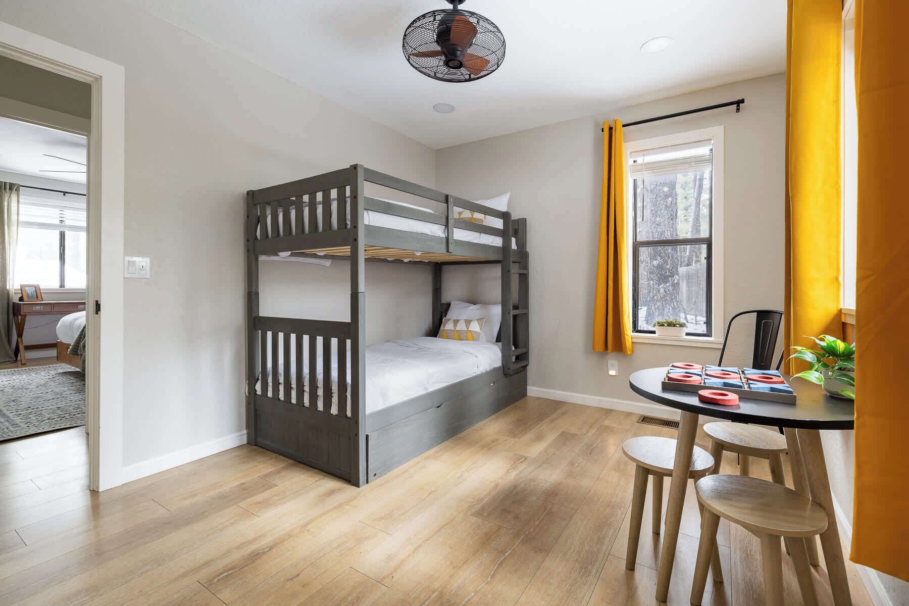 A-frame cabin, fenced-in yard