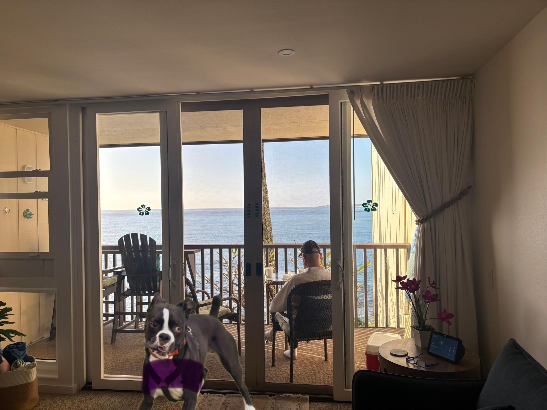 Very nice property. Beautiful ocean front view. Right across the street from a lovely cafe called Passion Bakery Cafe. There was a wonderful Luau experience down the street called Luau Ka Hikina. A little pricey but I would do it again in a heartbeat. The property is just right fortwo people