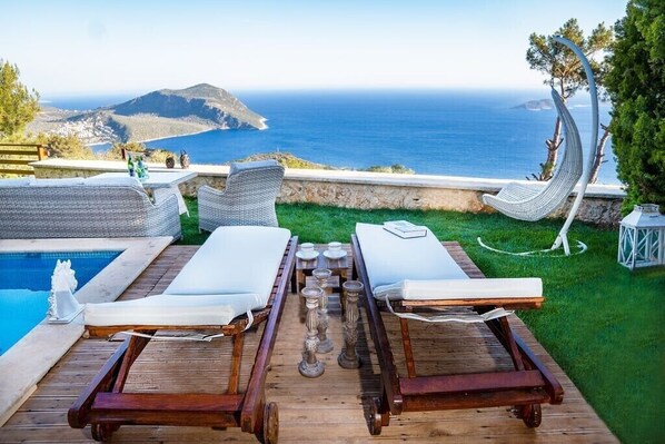 Die Villa White Pearl ist ein wunderschönes Anwesen an vorderster Front mit freiem Blick auf die türkisfarbene Küste. Die Villa bietet einen fantastischen Blick auf das Mittelmeer, die Berge und die Inseln.