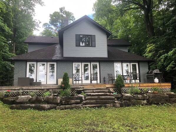Luxury waterfront living complete with newly renovated gourmet kitchen, 48” gas range, 48”subzero fridge, lake views from all principle rooms. Enjoy dining on large waterside deck, propane bbq, dock for your boat, waterside seating areas, great fishing out front, internet, central heating/air conditioning, electric fireplace, relax after a day on the water in the ensuite bath with large jetted tub, Pool table. Waterside fire pit. Wade in waterfront sandy bottom leading to large rocky area further past dock. Walk to town of Bobcaygeon for Tim Hortons, groceries, visit local shops, have an ice cream at Kawartha dairy, beer at local craft brewery, LCBO, Beer store. In the summer take the boat to the locks. Enjoy everything the Trent Servern waterway has to offer. Boat rentals available in town at Buckeye Sports. Watch the sailboats race Wednesday nights, enjoy concert at the Locks Thursday nights July and August. Karaoke, open mic night at Graz in town. Take time to enjoy life.