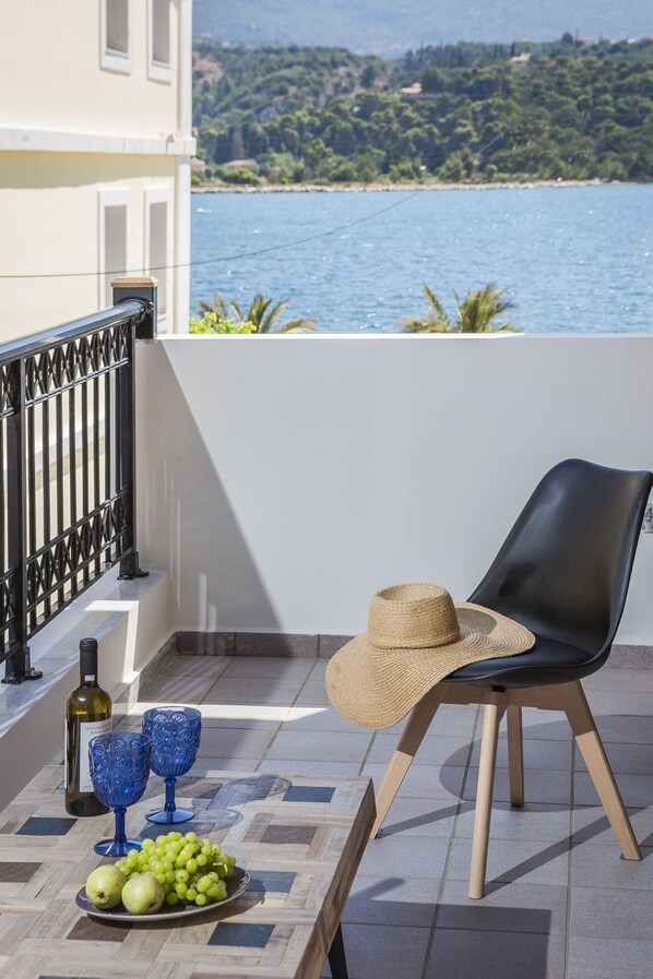 Enjoy our elegant 50 m² apartment, designed in grey beige tones with modern accents and tailored to the needs of worldly travelers who do not compromise with basic accommodation. Colorful vibes of materials blend together in harmony to offer an adorable environment. A high-standard suite, matching the amenities of luxurious hotels, located at the finest spot of the city center. Our superior balcony impress with a side view of the sea.