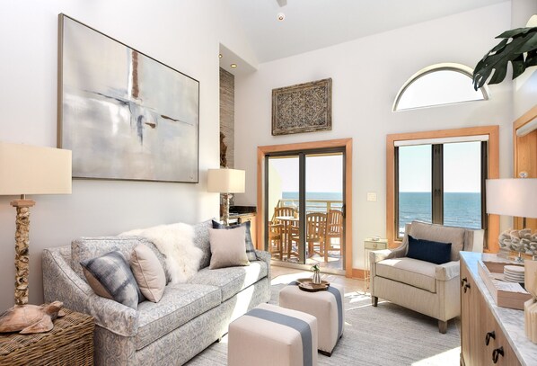 Professionally decorated, this beautiful Windswept unit boasts vaulted ceilings, custom cabinetry in the gourmet kitchen, a separate dining area and a spacious living room with large flat screen TV. Sip your morning coffee or afternoon cocktail on the porch overlooking the sparkling Atlantic Ocean or enjoy ocean front alfresco dining on Kiawah with a view.