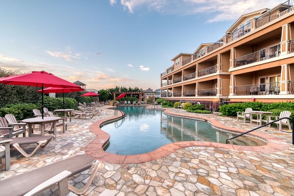 The outdoor heated 28x90 pool and hot tub are open from 04/15/2025-10/15/2025. The indoor 20x20 pool is open year-round.