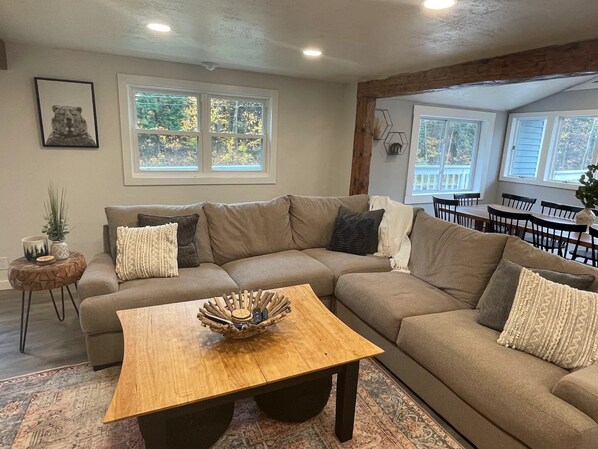 Great location. Good size for our multi family group. Space and layout awesome. Great game room and amenities (hot tub, sauna, pool table etc.). Host communicative and helpful! Kitchen oddly equipped—some excellent niche items but then missing basic things like serving spoons and enough flatware for the size it accommodates. Hot tub clean and wonderful but needs TLC with some knobs/pieces coming off and a wonky sounding motor. Upstairs couch is really tired. Bedrooms nicely appointed and beds comfy but downstairs bunks scary shaky—screws need to be tightened or replaced altogether. Bathrooms have loose hardware and some shoddy carpentry (guessing from the remodel) but look great. Some moulding loose even in mudroom entryway. We had a fantastic long ski weekend, just had higher expectations due to the five star price tag and compared to other places we have stayed at this price point.
