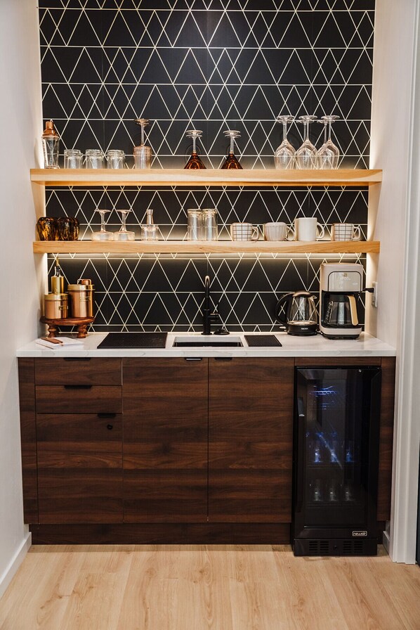 For those craving a unique stay where the home is the experience, Kestrel House is it. We have created a luxurious atmosphere that include high end appliances, a hidden dishwasher and microwave, a dedicated bar area, an electric fireplace, a deep soaking tub, rain shower heads and thoughtful touches throughout.
