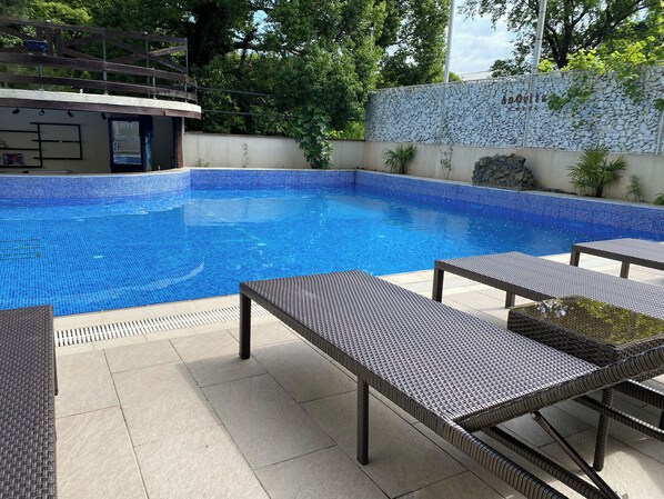 Der saisonal geöffnete Pool ist von Mai bis Oktober geöffnet