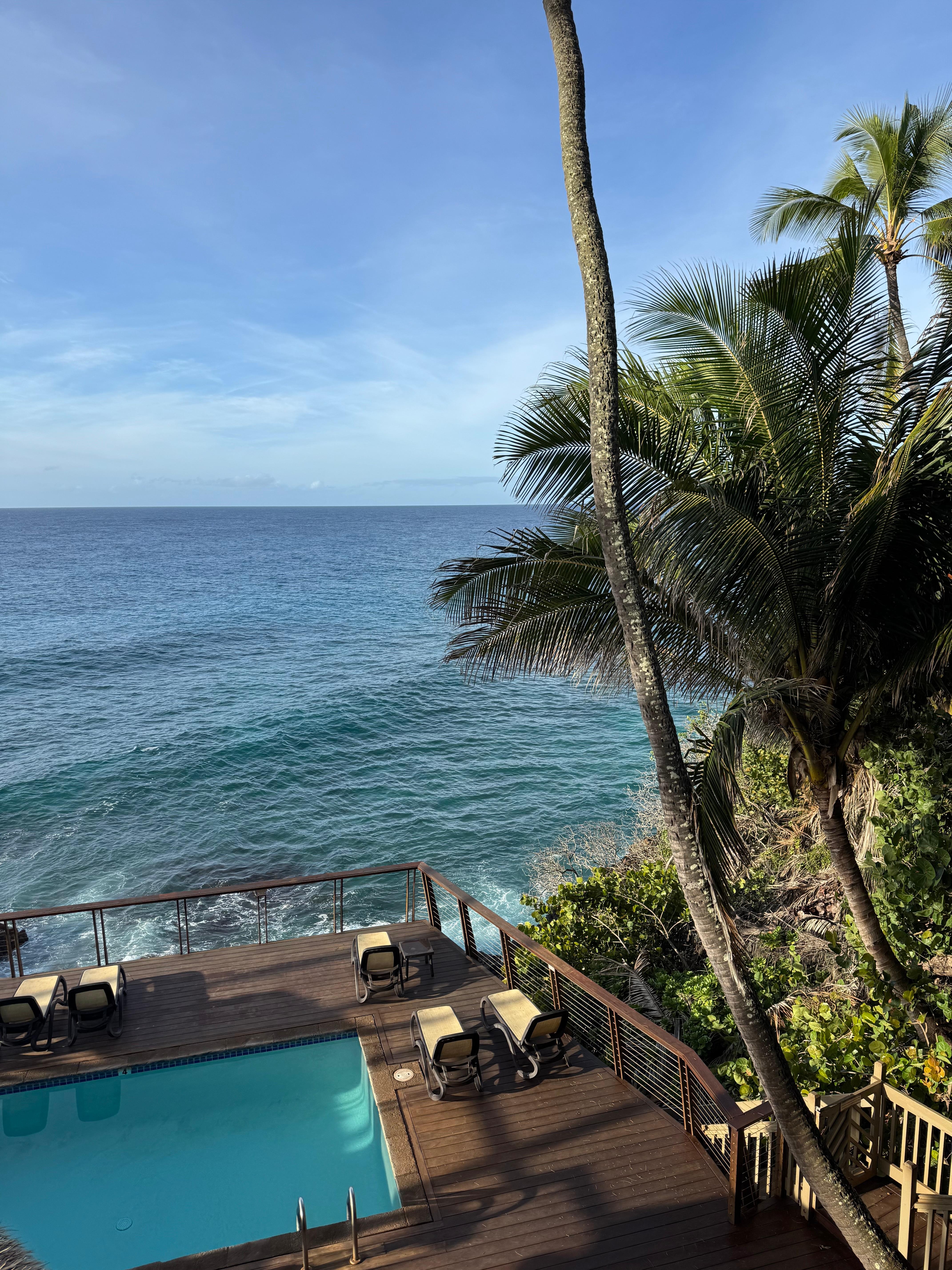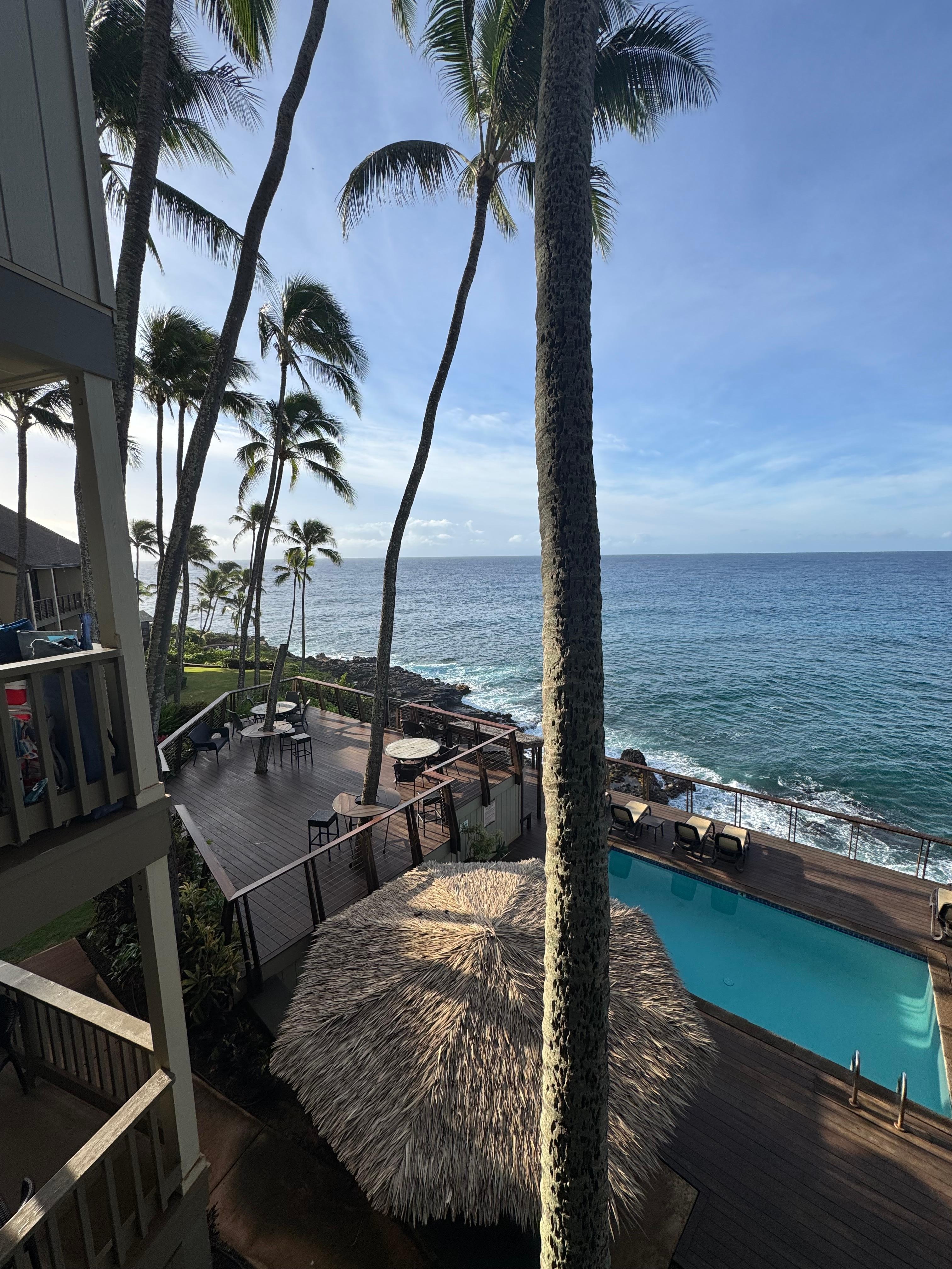 Had three excellent nights at this unit. We generally don't spend much time at the rental while on vacation, but we loved the lanai and the pool deck to the point it made it hard to leave everyday. The interior was cozy and felt like home immediately. Great sunset views a short walk down the hill, generally stayed cool when the ceiling fans were on, lots of nearby shopping and eating. The sound of the ocean crashing into the rocks below every night might be the thing I miss most. THIS PLACE IS AWESOME!!!!!