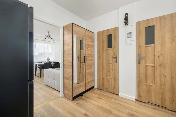 Diese moderne Wohnung befindet sich im 4. Stock eines Gebäudes in der Wąska-Straße in Kolobrzeg und ist ein komfortabler Ort für Familien und Gruppen von bis zu 6 Personen. Die Wohnung besteht aus drei unabhängigen Schlafzimmern, jeder Raum bietet komfortable Schlafbereiche und Privatsphäre. Die Inneneinrichtung ist in einem gemütlichen, heimeligen Stil gehalten, wobei auf Funktionalität und Komfort geachtet wurde. Eines der Schlafzimmer ist mit einem breiten Doppelbett ausgestattet, das zweite und dritte mit einer Doppelschlafcouch. In jedem Zimmer gibt es einen Fernseher, so dass jeder Gast unabhängig entspannen kann. Die Wohnung verfügt über eine voll ausgestattete Küche mit Backofen, Geschirrspüler, Gasherd, Mikrowelle und Schnellkochtopf. Außerdem gibt es einen Eiswürfelbereiter, einen Elektrogrill, einen Toaster und einen großen Esstisch, der zu gemeinsamen Mahlzeiten einlädt. Der möblierte Balkon, der vom Wohnzimmer aus zugänglich ist, ist der perfekte Ort für den Morgenkaffee oder die abendliche Entspannung an der frischen Luft. Die Wohnung verfügt über ein Bad mit Badewanne und eine separate Toilette. Den Gästen stehen eine Waschmaschine, ein Haartrockner, ein Bügeleisen und ein Bügelbrett zur Verfügung, so dass diese Wohnung auch für längere Aufenthalte geeignet ist. Dies ist der perfekte Ort für diejenigen, die sich am Meer in einer häuslichen Umgebung entspannen wollen, mit Familie, Kindern oder Freunden.