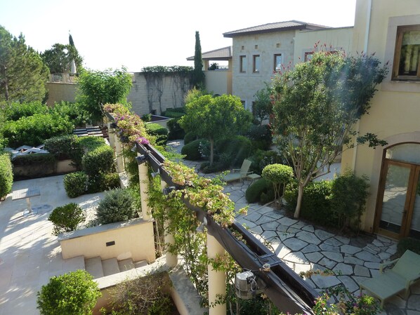 Das Anwesen verfügt über einen eigenen Parkplatz, einen atemberaubenden Blick über einen der beiden Gemeinschaftspools des Dorfes und ist nur einen kurzen Spaziergang vom anderen entfernt.