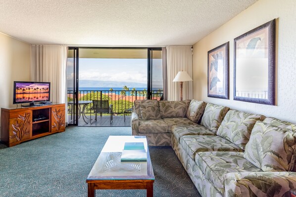 Gorgeous views from the lanai of this ocean-view unit. Sit back on your couch and relax with the ocean outside on your horizon. Make a cup of coffee in the kitchen or even your favorite meal and hang out on your private balcony with the West Maui breezes.