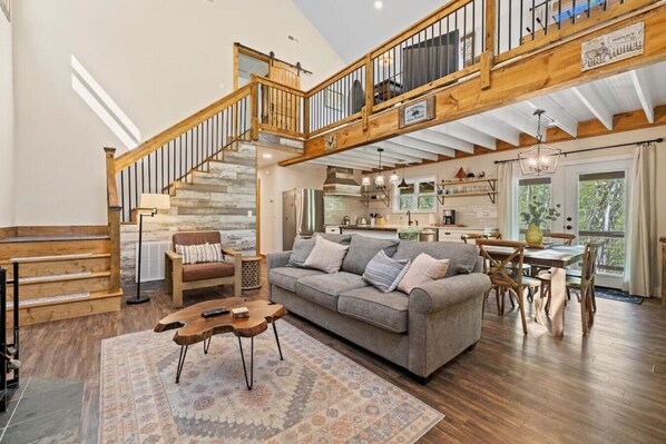 On the main level, you'll find a fully equipped kitchen ready for you to prepare your meals. Sit down for a nice family dinner in the dining area of up to six next to the spacious living room area, or take your plates to the back patio and enjoy a forest view.