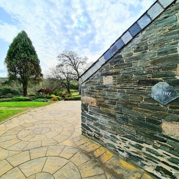 This cosy stone and slate cottage is a peaceful hideaway, perfect for a romantic break. The living room window looks out onto the pretty stone wall adorned with summer flowers beyond which you can see the sloping gardens which lead to the pond. All on one level, with a low step in shower, the Smithy cottage offers easy access. Enjoy the summer sunshine on the south facing patio area outside. Relax in the new Vita Hot Tub or Swim Spa – available to hire privately for an extra special break.