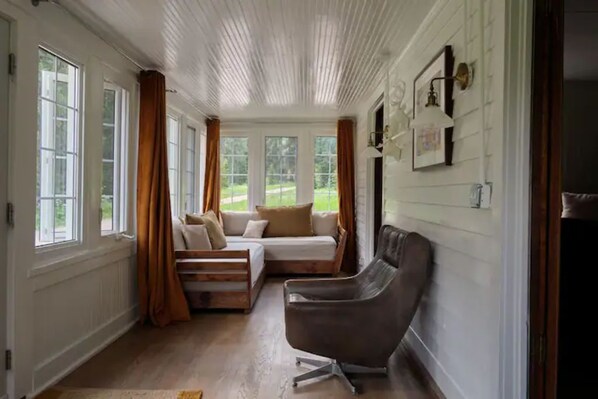 Through the remodel, the foremost goal was to create a comfortable and cozy space that allows you to feel part of the woods. The furnishings are high end - RH chairs, Inside Weather Sofa, Purple 3 king mattress, and many hand made accent pieces. If you are looking for a break from a busy world, this is an oasis and what it was designed to be!