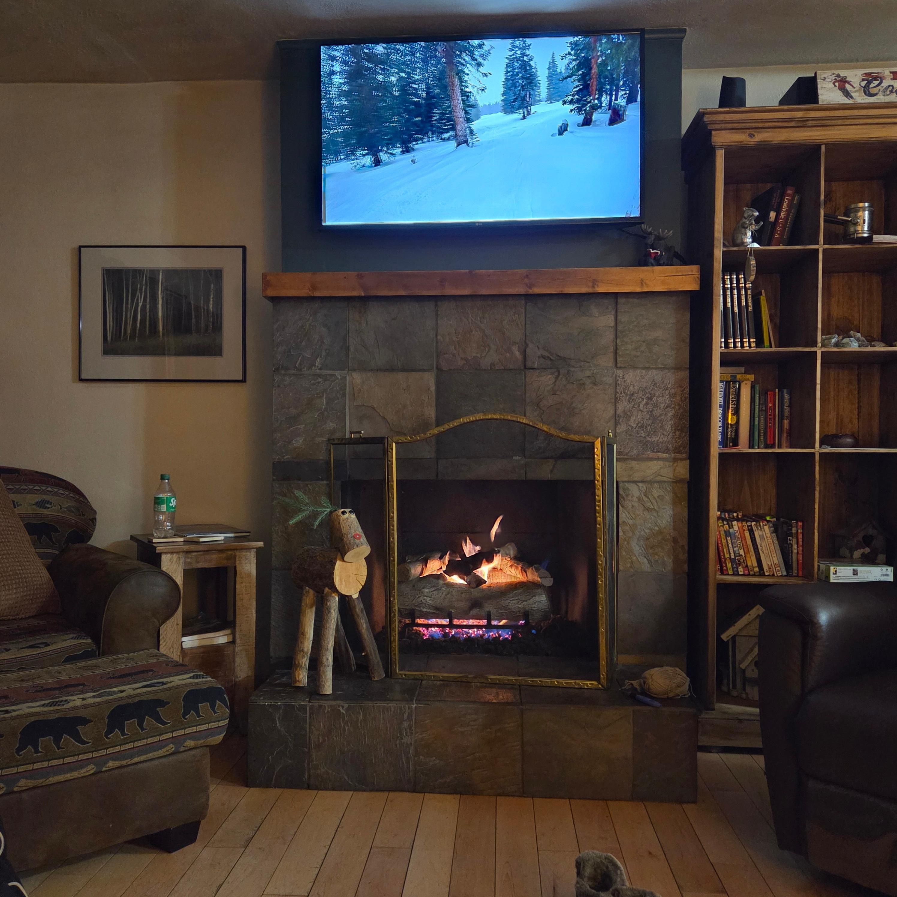 Fernseher, Kamin, DVD-Player, Musikbibliothek