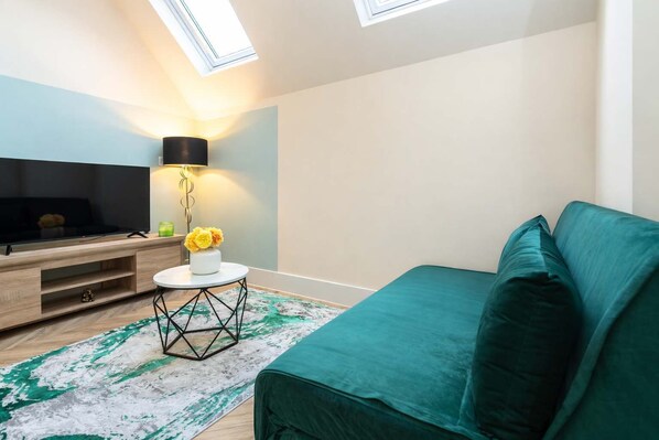 This stylish loft apartment is bang in the centre seconds from bars, restaurants, shops and transport links. Featuring a mezzanine bedroom with exposed beams, luxury shower room, fully equipped kitchen and smart TV with Netflix, it’s perfect for couples, professionals and weekend city breaks.