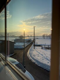 The views were absolutely beautiful. You wont get the full idea from the pictures alone unless you experience it.The apartment was clean, nice, and welcoming with little personal touches like fruit on the table. Everything was stacked properly, towels were ready, and it just felt put together. I also appreciated the privacy. The apartment was to the side/back of the house, it had its own private porch and area was enclosed with a gate so the kids could run around. The porch was spacious and from there you get amazing views: sunsets, sunflower fields, cornfields, sheep grazing, cows grazing, even Amish carts and buggies passing by. It really felt surreal and beautiful. Overall I’m thankful for a pleasant, easy, and accommodating experience.