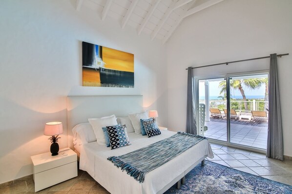 Villa Callisto is a contemporary home located in the prestigious gated community of Terres Basses, known as the most residential area in St. Martin. This stunning villa offers three bedrooms, each with its own en-suite bathroom, providing comfort and privacy for guests.