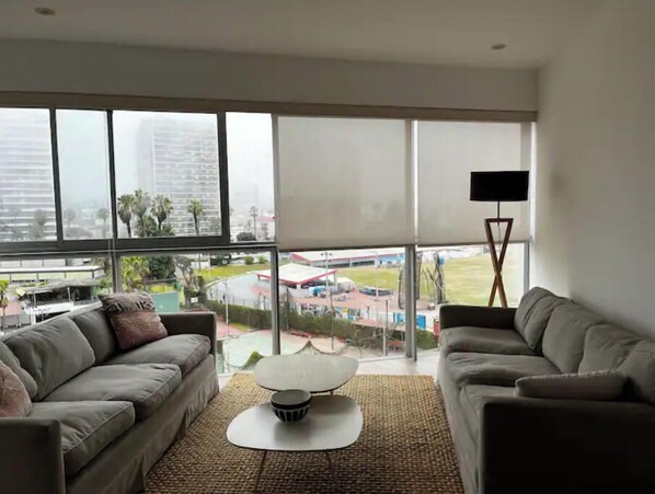 This is a two bedroom apartment. It has a living room with kitchen and dining space. Two bedrooms and two bathrooms. It is located in the heart of Barranco District, in front of a park and one block away from the ocean front. The space has lots of light. The neighborhood is great for business and vacation trips. Walking distance to the trendiest places in Lima. Near cafés, bars, restaurants, art galleries, museums, etc. Great area for running and walking.
