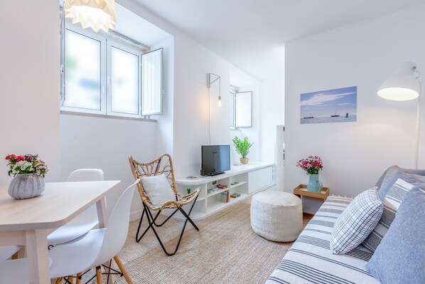 Situated in ground floor your will find a charming apartment with a double bed bedroom, a living room with double sofa bed, a full equipped kitchen and a bathroom.