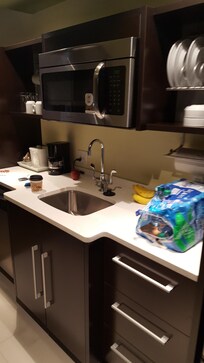 - die Küchenecke verfügt nicht über einen Backofen/Herdplatten, kochen ist also nicht möglich (jedenfalls nicht im Zimmer mit Queenbett und Schlafsofa)