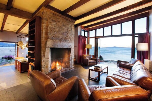 Dramatic, elemental, wild Thalia Haven is set on a private 130-acre wooded peninsula surrounded by the crystal-blue waters of renowned Great Oyster Bay. Experience Tasmania's wild East Coast from a unique perspective. Five kilometers of coastline include your own exclusive golden sand beach. Accommodation is in four ancient stone bedrooms clustered around flowered courtyards on the ocean's edge. Thalia is a bold showcase of self-reliance: your water, electricity and warmth are drawn from its land, breezes, and sunshine. Rustic, yes. But fear not: all the comforts you will need to relax, enjoy and explore are at hand. When you book a holiday at Thalia, you have the whole house to yourselves. That includes our 130 acres – and our beach! We will send you details on how to find the house and key prior to your arrival, and we will be available to answer questions throughout your stay. Thalia is set in a wild, remote location on Tasmania's beautiful East Coast. You'll need a car. We're an easy drive from Tasmania's main airports. Thalia is self-catering, so now is your opportunity to cook some of our beautiful Tasmanian offerings! Our kitchen is fully equipped, with a cooking fireplace, steam injection oven, and four gas burners. We provide a pantry of basic supplies to make your shopping and cooking easier. Please help yourselves to flour, sugar, cereal, olive oil, vinegar, spices, and all manner of coffee and teas. Rosemary, parsley. thyme, chives, oregano and bay leaves grow outside the kitchen door. If you'd like, we will send you suggestions on where to find nice provisions for your stay.