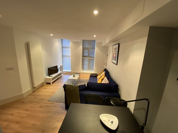 Newly renovated luxury city apartment with super fast wireless fibre broadband and home office. One King size bedroom and 1 double sofa bed in the living room if required for additional guests. Great central city location. Smart tv, dishwasher, washer dryer. Located at the site of a famous Jack the Ripper crime.