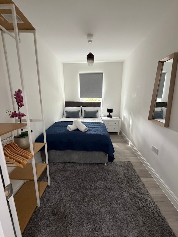 • Sleeps up to 9 guests • 4 well-presented bedrooms • Bright living area with Smart TV • Fully equipped kitchen with coffee machine • Dining area for shared meals • 1 full bathroom + separate WC • Private outdoor garden/patio • Dedicated workspace area