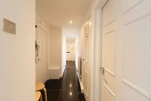 The flat’s full bathroom comes with fresh towels, toiletries, and essentials to keep you refreshed throughout your stay. A washer is also available, adding extra convenience for longer visits.